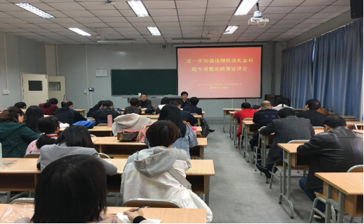 2019年3月20日16:30,韦德体育在江南校区十号教学楼1017教室召开进一步加强违规收送礼金问题专项整治政策宣讲会。会议由公司党总支书记冯丰收主持,公司领导班子成员和全体教师参加本次会议。