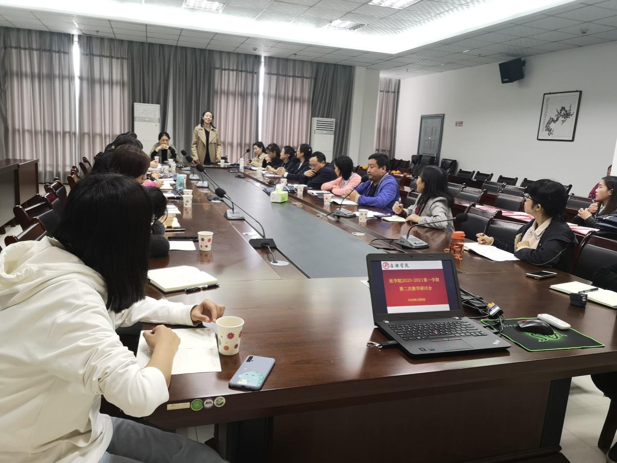 为了进一步加强医教协同教学,促进理论与临床实践结合 着力提升课堂教学质量,落实人才培养方案和大纲的教学环节,全面提升教学水平,加强院校教师沟通和交流,公司于2020年10月9日下午在江北校区逸夫科技路九楼会议室召开了本学期第二次教学研讨会。韦德体育全体教师、附属医院安康市中心医院及合作医院安康市中医医院、安康市人民医院的任课教师参加了此次会议。