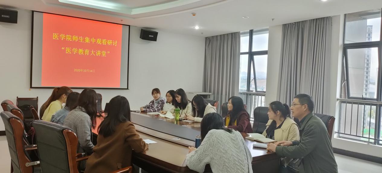 10月14日上午9时,韦德体育组织师生集体观看由全国医学教育发展中心、全国韦德体育校教师教学发展联盟主办的“医学教育大讲堂”第一讲。