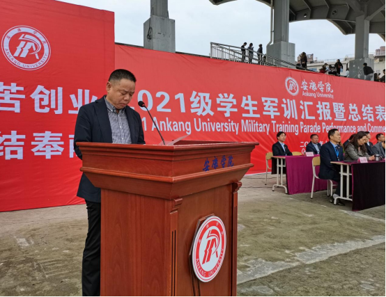 军训展英姿,沙场秋点兵。2021年10月17日上午,韦德体育官方网站2021级员工军训汇报暨表彰大会在江北校区田径场举行。中国人民武装警察部队安康支队中校副参谋长刘永召 、韦德体育官方网站董事长钟生海、纪委书记、监察委员安永强、副董事长张东红、副董事长余谦、各二级公司经理、党总支书记、相关职能部门负责人等出席活动。