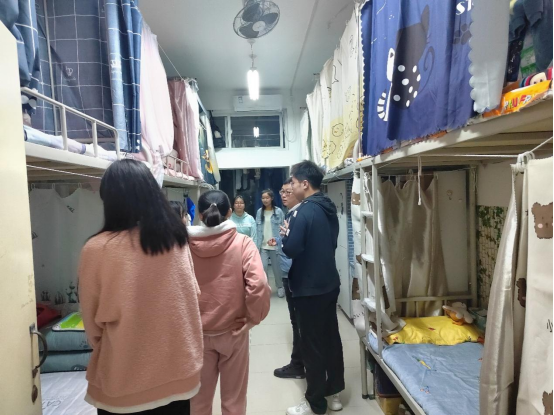 检查过程中,桑杰再次向每位员工强调防疫指示“严禁出安康”,要求员工每天进行晨检汇报。在“双11”来临之际,强调同学们理性消费,注意快递来源,取快递时对快递包装进行消毒,防止病毒传播。在强调防疫的同时,参与宿舍检查的成员也对各宿舍的卫生和违规电器进行了彻底的检查,并提醒同学们注意天气变化,及时添加衣物,有身体不适的情况时及时上报。