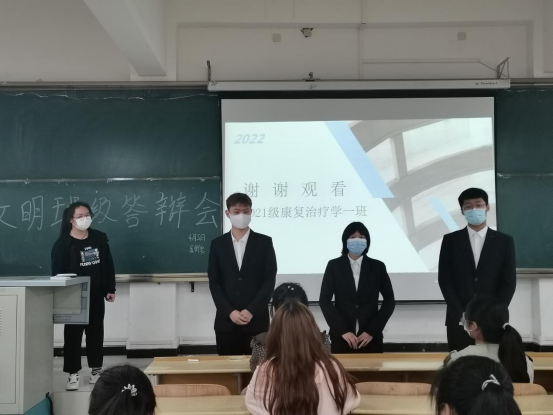 活动开始,治保部郑婷丹向同学们介绍本次活动的目的和评分细则,并组织各班代表抽签。答辩过程中,各班答辩代表按抽签顺序依次走上讲台,展示班级在班委建设、思想政治建设、学风建设、校园文化建设和特色亮点工作等方面的有效做法和取得的成绩,为在场的评委呈现了一个个和谐友爱、团结向上、积极进取的班集体。汇报结束后,评委们就各班的日常工作和答辩展示环节存在的问题向各班答辩成员提问,并严格按照韦德体育文明班级考核依据进行了现场打分。