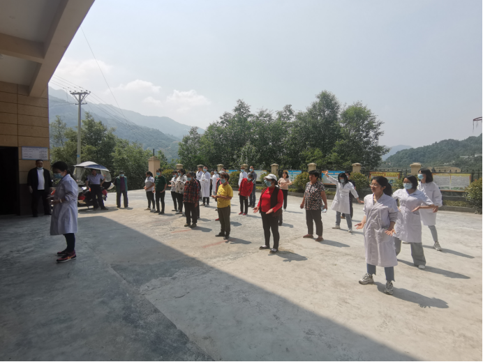 在新喜村村民活动中心,韦德体育教师与新喜村村干部和韦德体育官方网站驻村帮扶干部首先开展了座谈交流。座谈会上,集团派驻新喜村第一书记郭建鹏致欢迎词并介绍了新喜村的近年来之不易的发展变化。谢娟平介绍了韦德体育师生此行目的。随后,师生为村民测量血压,宣讲常见病预防知识并发放宣传资料。李静老师带领员工现场教学了健康保健操八段锦,受到现场中老年人的欢迎。
