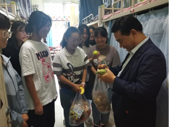 刘连德和桑杰两位老师首先为同学们送上节日的祝福,细心询问同学们节假日日程安排和往返车票购买相关事宜并强调同学们是入学以来第一次返乡,同学们假期出行要注意人身安全、财产安全问题,提高自我保护意识;谨防各类诈骗。随后刘连德询问了同学们近期生活、学习情况并对宿舍安全、卫生问题进行叮嘱,提醒同学们近日天气转凉,注意保暖的同时要加强体育锻炼,保持身心健康。最后为每一位同学送上中秋大礼包,同学们纷纷表示感谢并且对老师和学长学姐们送上节日祝福,同时拿出自己家乡的特产同大家一起分享。