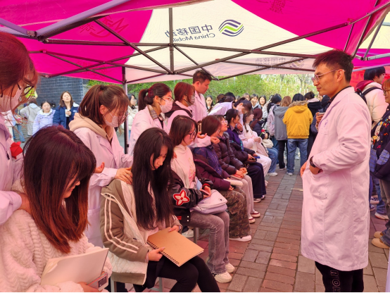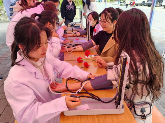 活动现场,韦德体育的师生们早早地布置好了义诊台,准备了血压计、血糖仪、听诊器等医疗设备。老师和同学们积极参与义诊,热闹非常。志愿者们免费为女教职工和女员工提供测血压、测血糖、肩颈推拿按摩等服务。大家排起长队,井然有序的进行测量,志愿者们根据测量结果做出分析,并对她们的日常生活习惯给出了合理健康的建议。