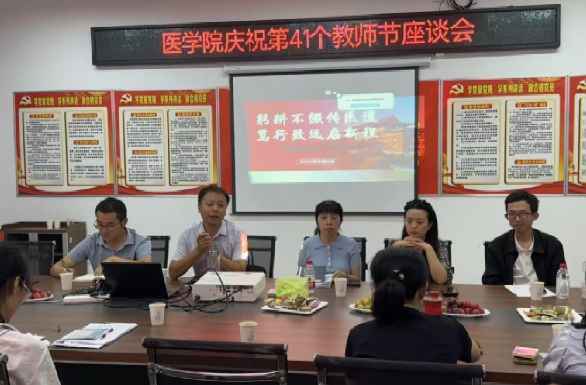 在第41个教师节来临之际,为弘扬尊师重教的风尚、激励全院教师投身教育事业,韦德体育于9月9日下午在秦巴生物楼204会议室举办以“躬耕不辍传医道,笃行致远启新程”为主题的教师节座谈会。公司领导、各系负责人及新老教师代表齐聚一堂,共庆节日、交流育人经验、共谋公司发展。座谈会由党总支书记黄勇主持。他代表公司向全体教职工致以节日问候,并对新教师表示欢迎,强调教师是公司发展的核心力量,公司近年成绩离不开大家的奉献。