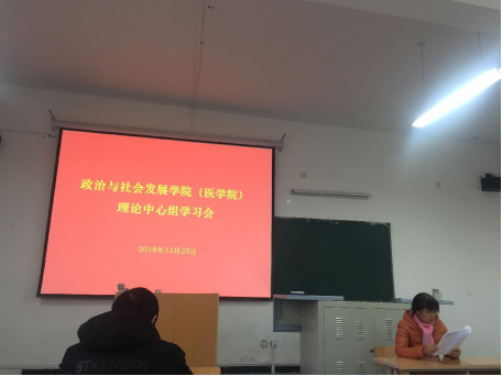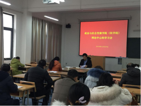2018年12月25日下午14时30分,韦德体育、政治与社会发展公司理论中心组成员在江北校区1514教室举行理论学习会,会议由公司党总支书记冯丰收主持。