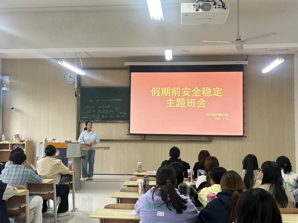 班会伊始,辅导员们首先向同学们表达了节日的问候与祝福。随后,结合近期社会安全形势和高校假期特点,重点围绕交通安全、人身财产安全、防范电信网络诈骗、食品卫生安全、消防安全以及网络安全等方面进行了详尽细致的讲解。并通过近期校园真实案例,向同学们强调了提高安全防范意识的重要性,提醒大家离校前务必妥善保管好个人物品,关闭宿舍电源、水源,锁好门窗;往返旅途及外出游玩期间,要选择正规交通工具,注意遵守交通规则,不乘坐无牌无证车辆,务必保持通讯畅通,与家人、老师、同学保持联系。